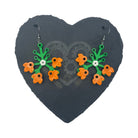 The earrings come decorated with 4 orange leaves and a light blue flower. The leaves and flowers can be moved around - so there are endless opportunities to change and decorate these earrings.