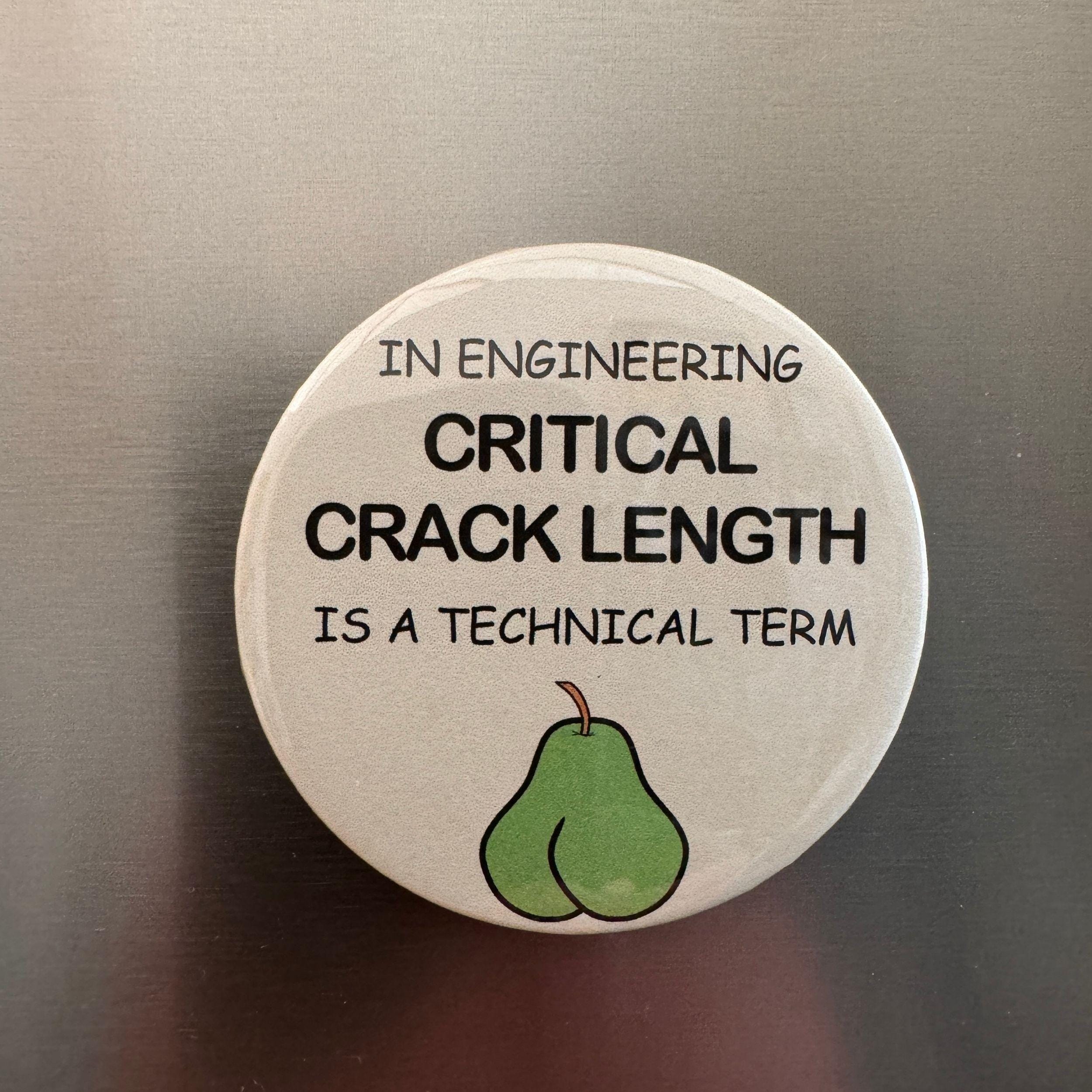 Critical crack Length? Be the envy of all your engineering friends with this professionally themed (rude, for non engineers) bottle opener magnet.