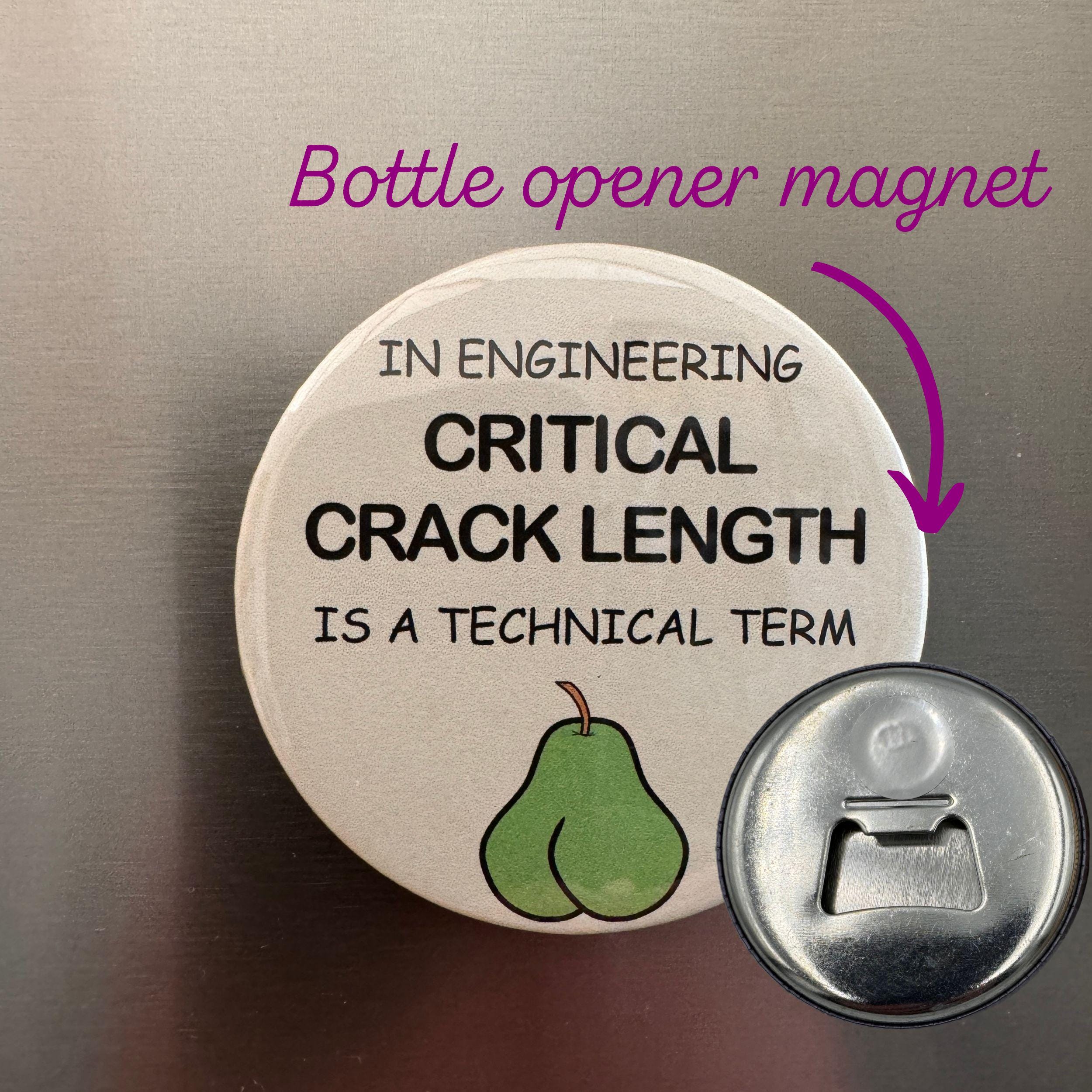 Funny Engineer Bottle Opener Magnet. Cheeky Engineering Joke Gift. Rude Technical Critical Crack Length Alcohol Present.