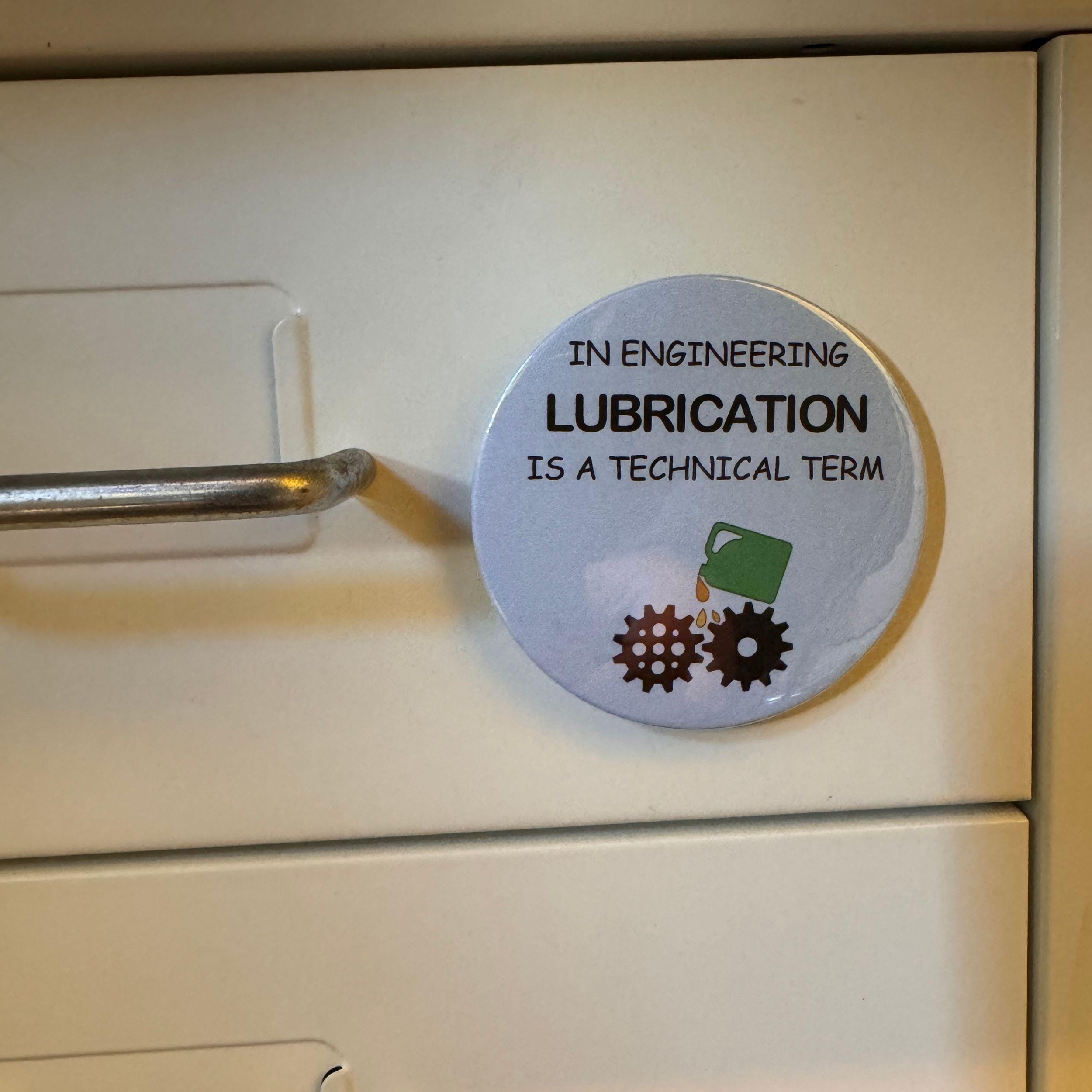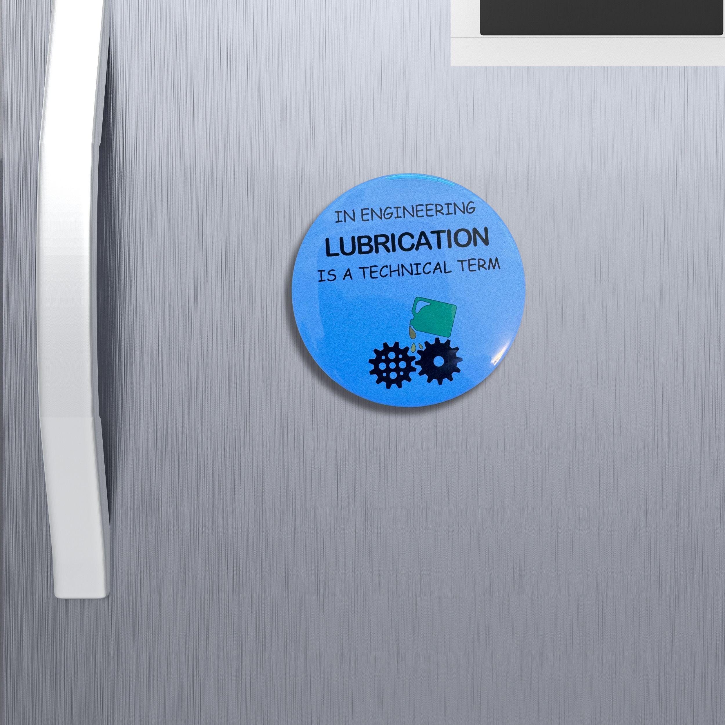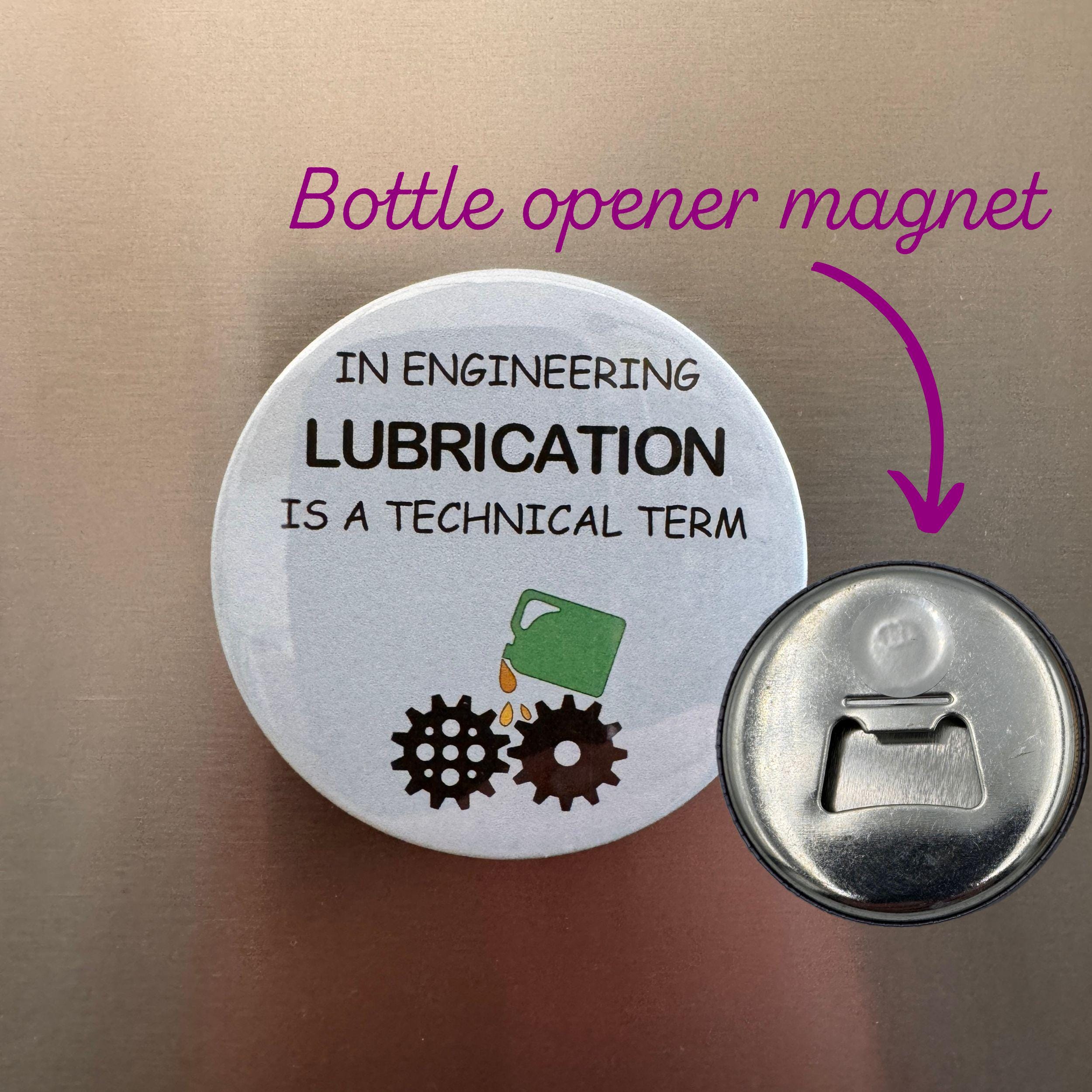 Funny Engineer Bottle Opener Magnet. Cheeky Engineering Joke Gift. Rude Technical Lubrication Alcohol Present.
