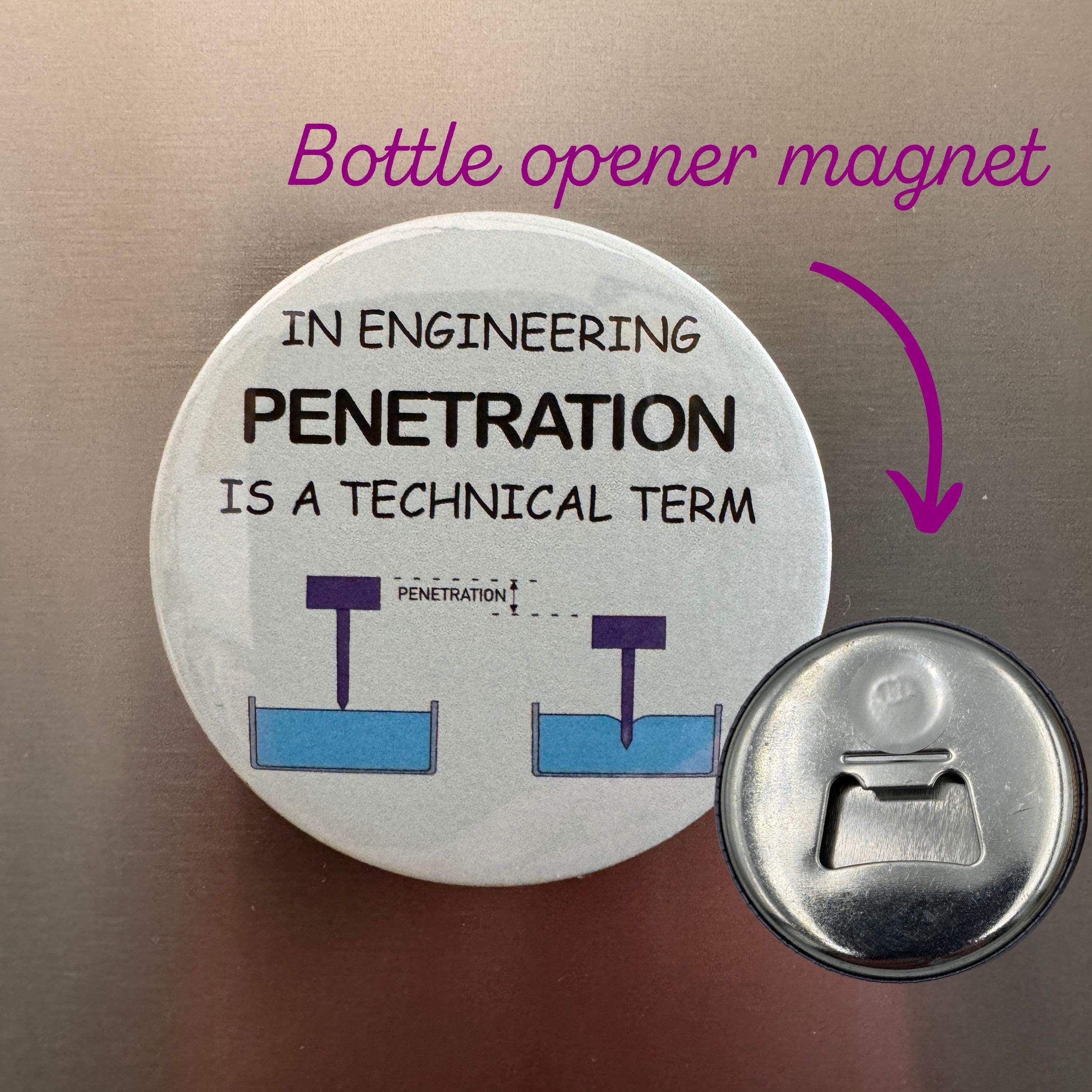 Funny Engineer Bottle Opener Magnet. Cheeky Engineering Joke Gift. Rude Technical Penetration Alcohol Present.