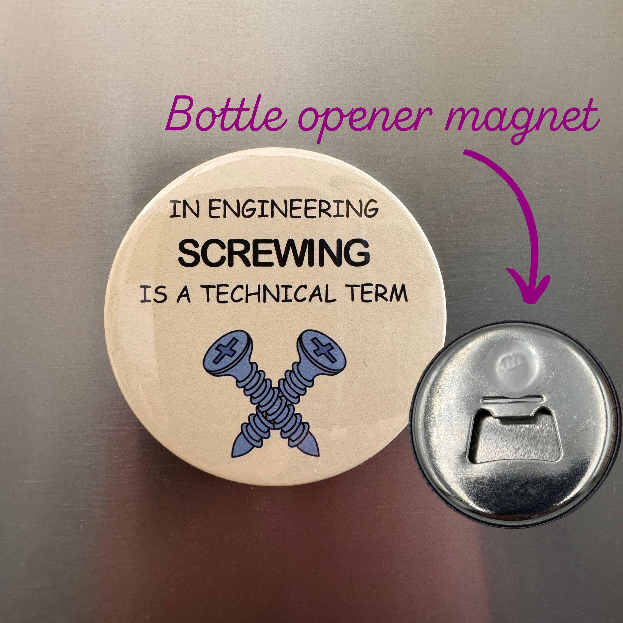 Funny Engineer Bottle Opener Magnet. Cheeky Engineering Joke Gift. Rude Technical Screwing Alcohol Present.