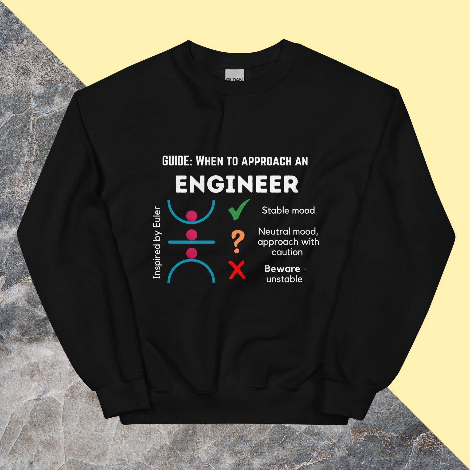 Funny Stable Engineer Sweatshirt. When to Approach Engineers inspired by buckling stability