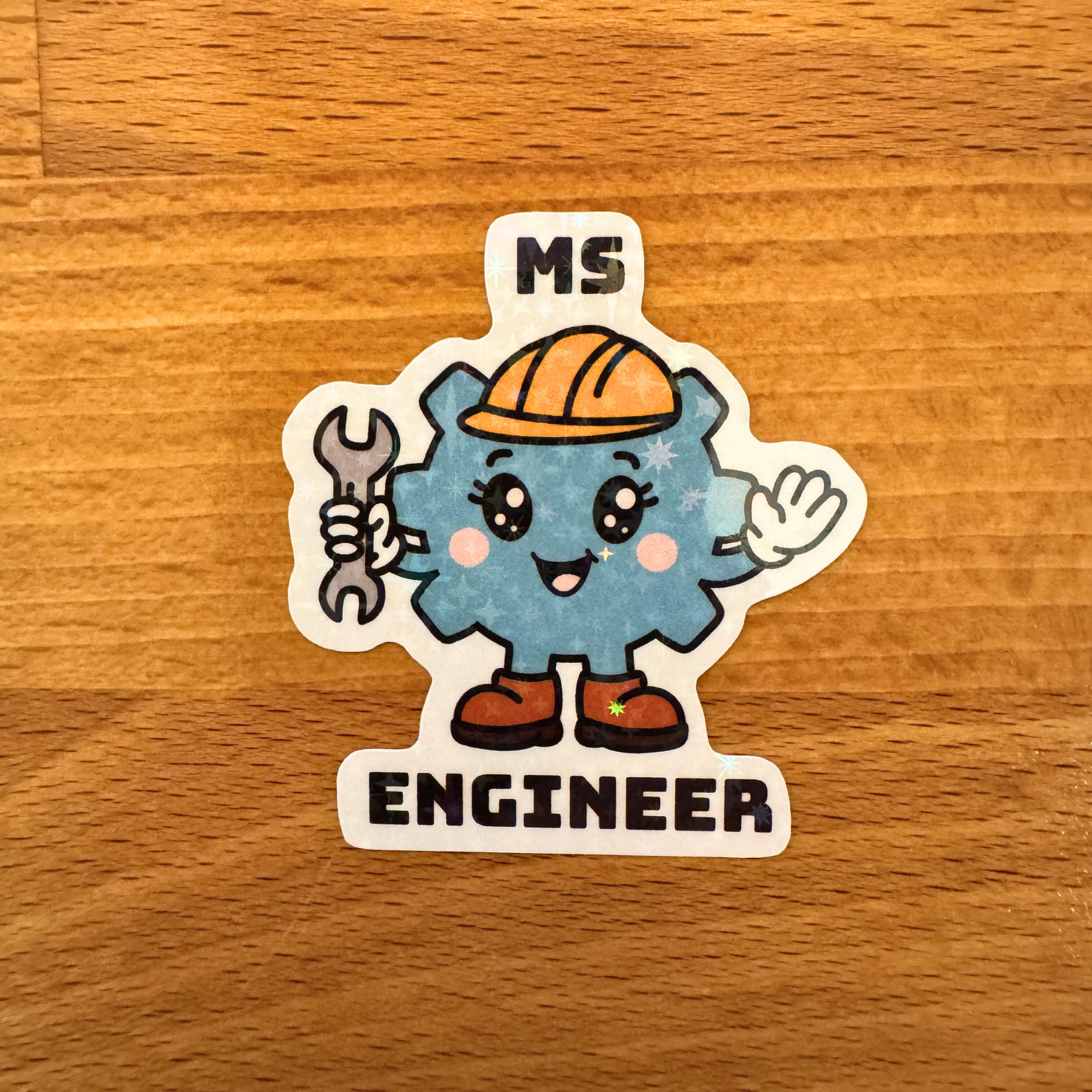 Celebrate diversity and role models in Engineering with this cute holographic sticker, featuring our very own Ms Engineer.