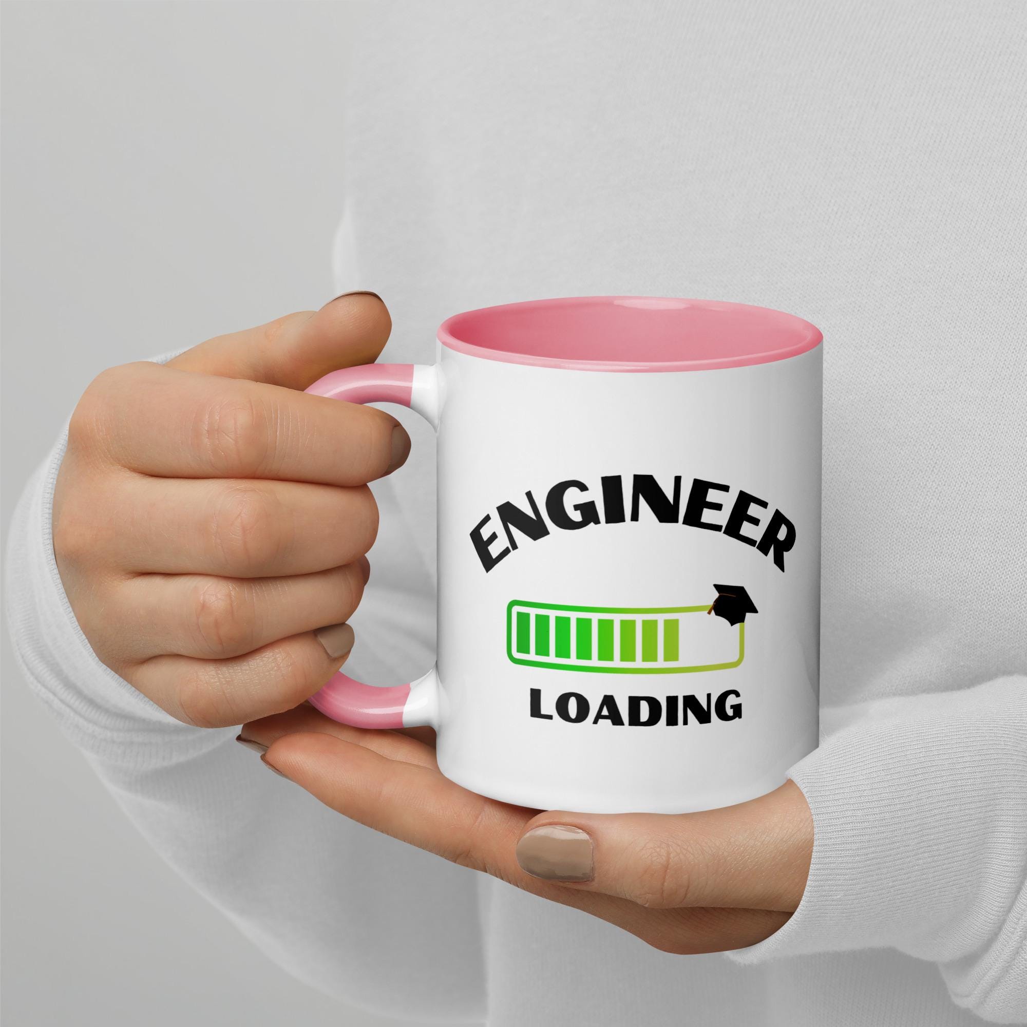 Personalised Engineering Student Mug with Colour Handle and Inside. Customised Student Gift Mug.