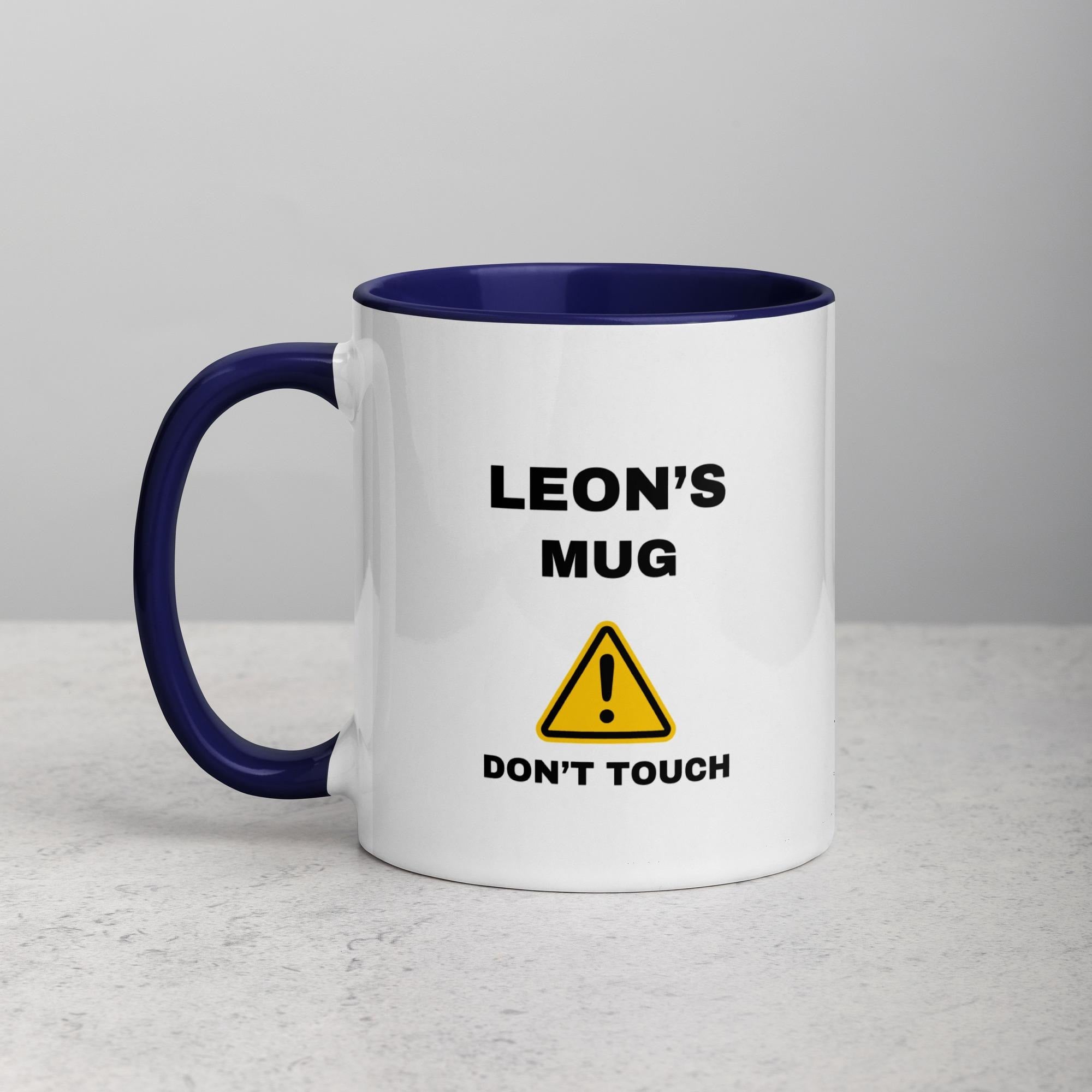 The mug is a glossy ceramic with a colourful rim, handle and inside. You can choose from Dark Blue, Mint or Pink - use the dropdown box. The mug has a height of 94mm and a width of 82mm and is dishwasher & microwave safe.