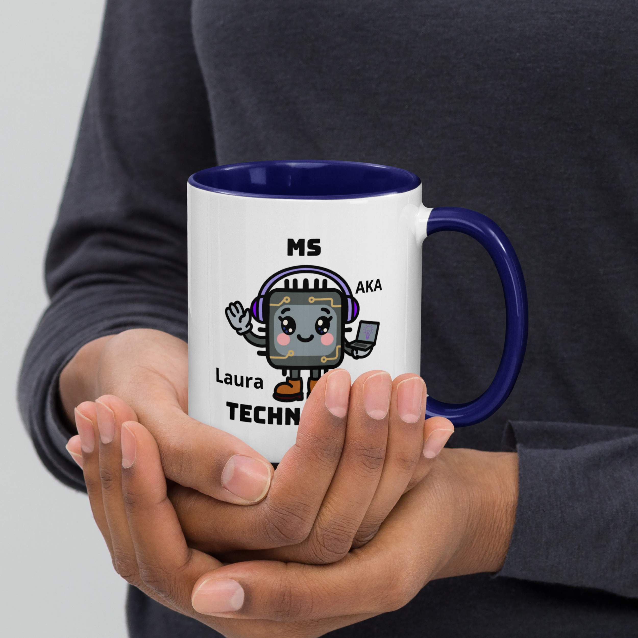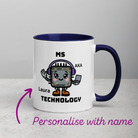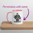 Personalised Woman Ms Technology Mug with Colour Handle. Customise with Name Tech Gift