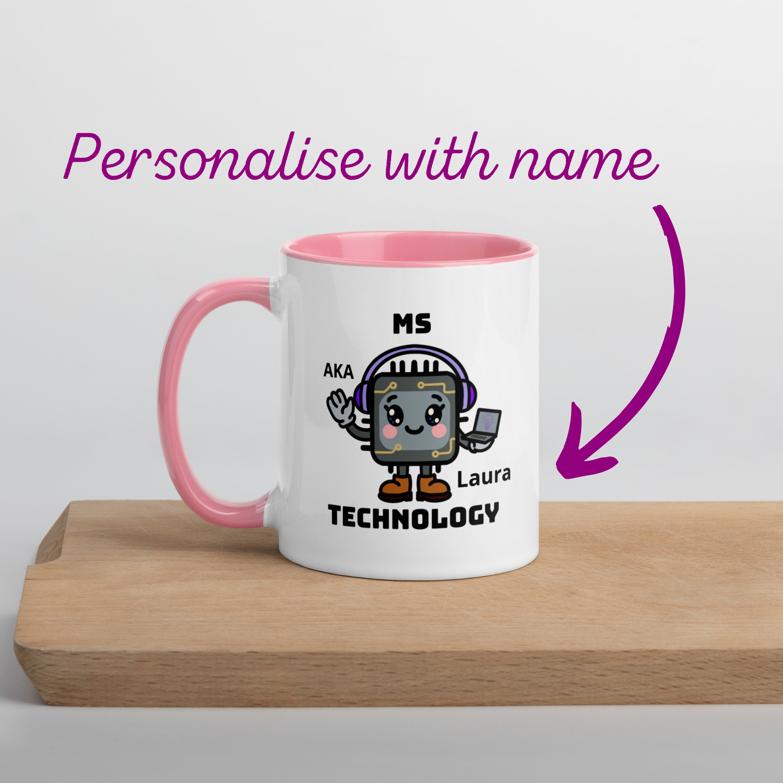 If no personalisation is chosen, you will receive a non personalised mug (Ms Technology with no name).