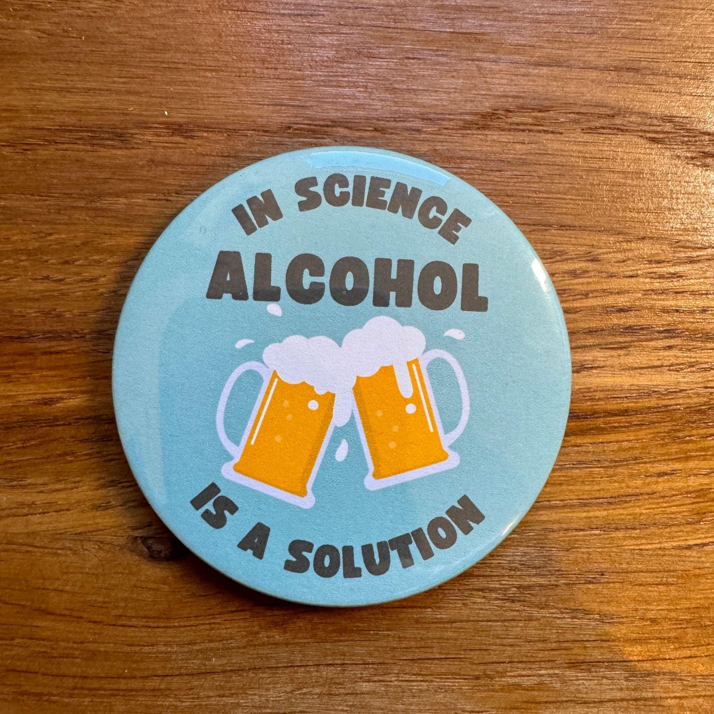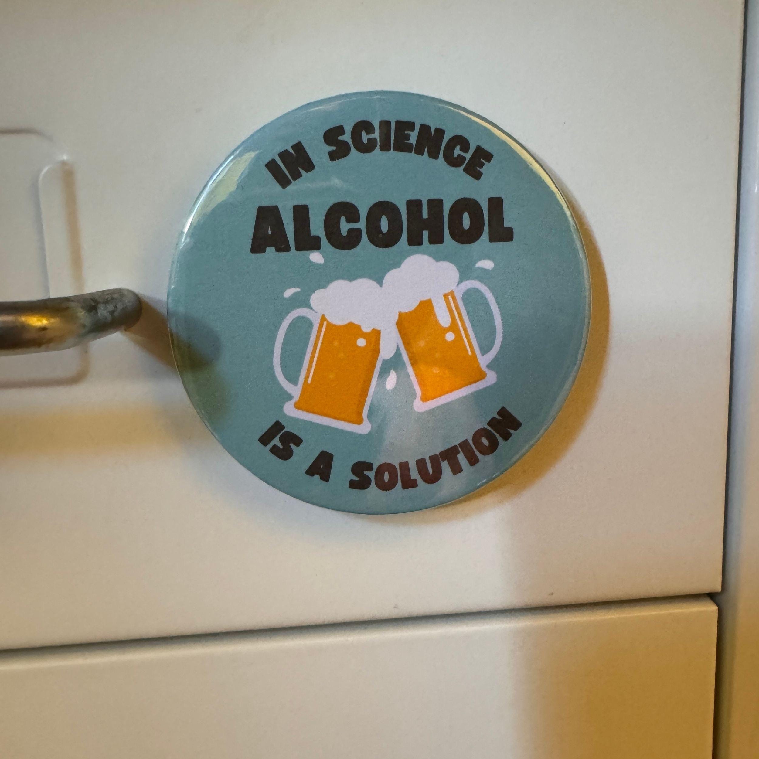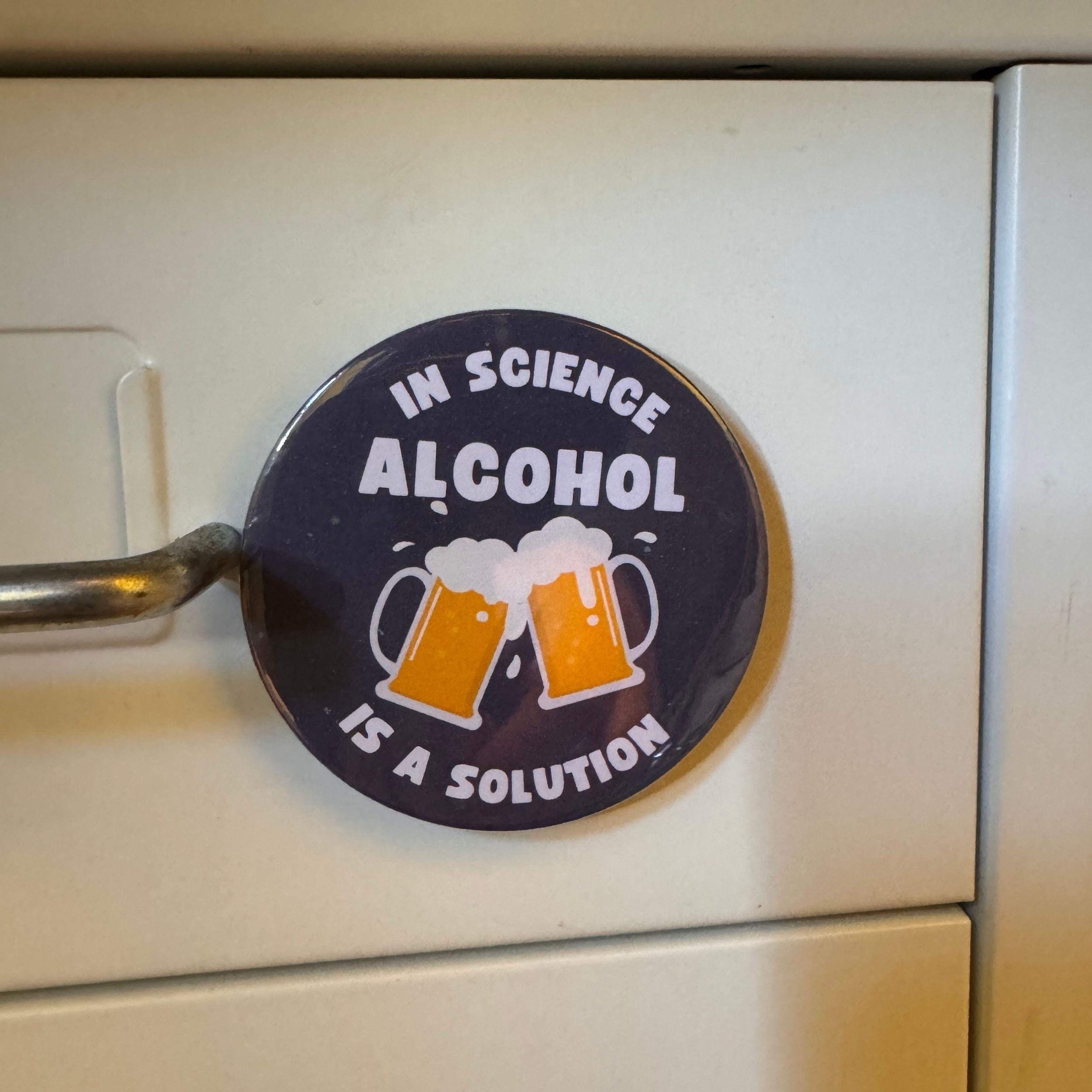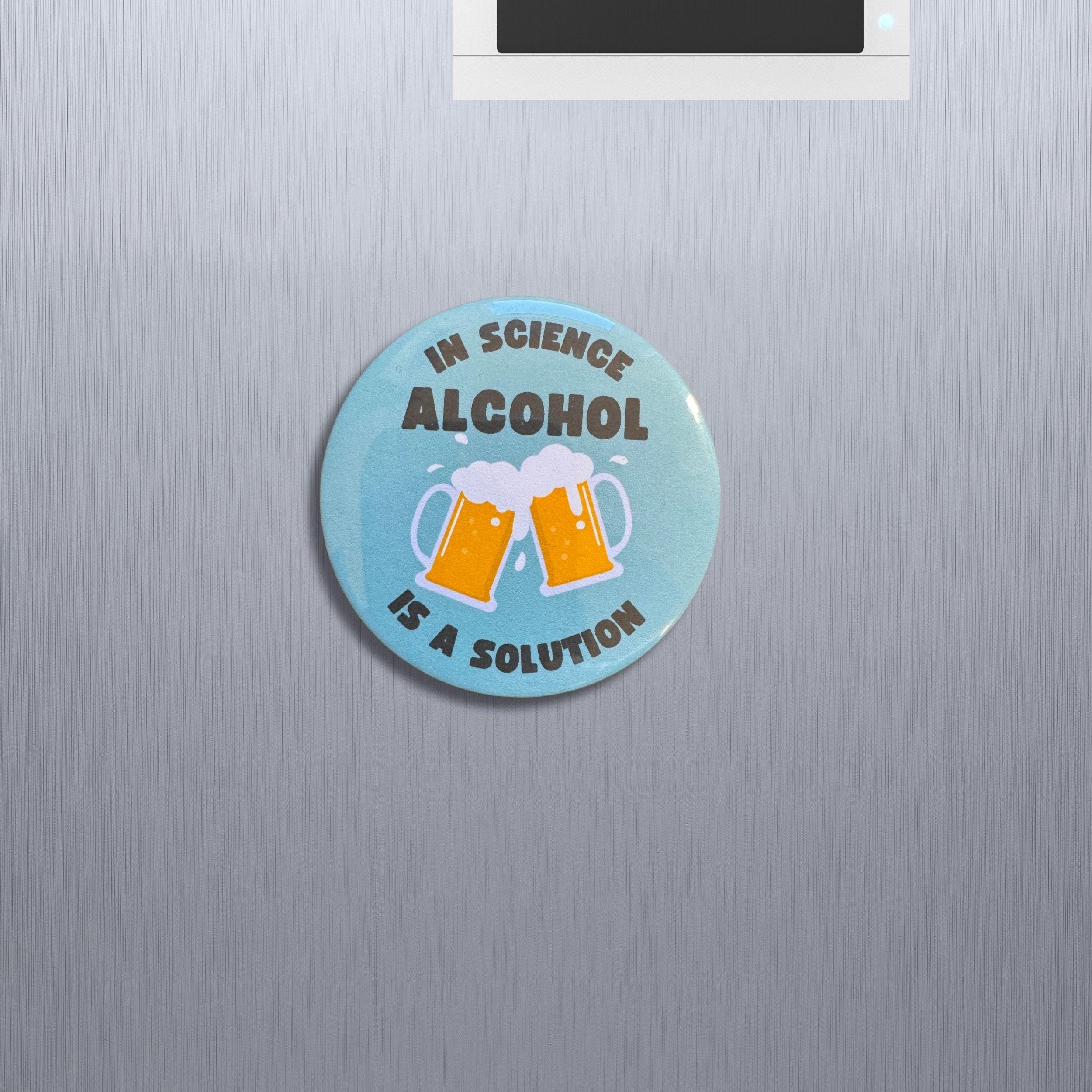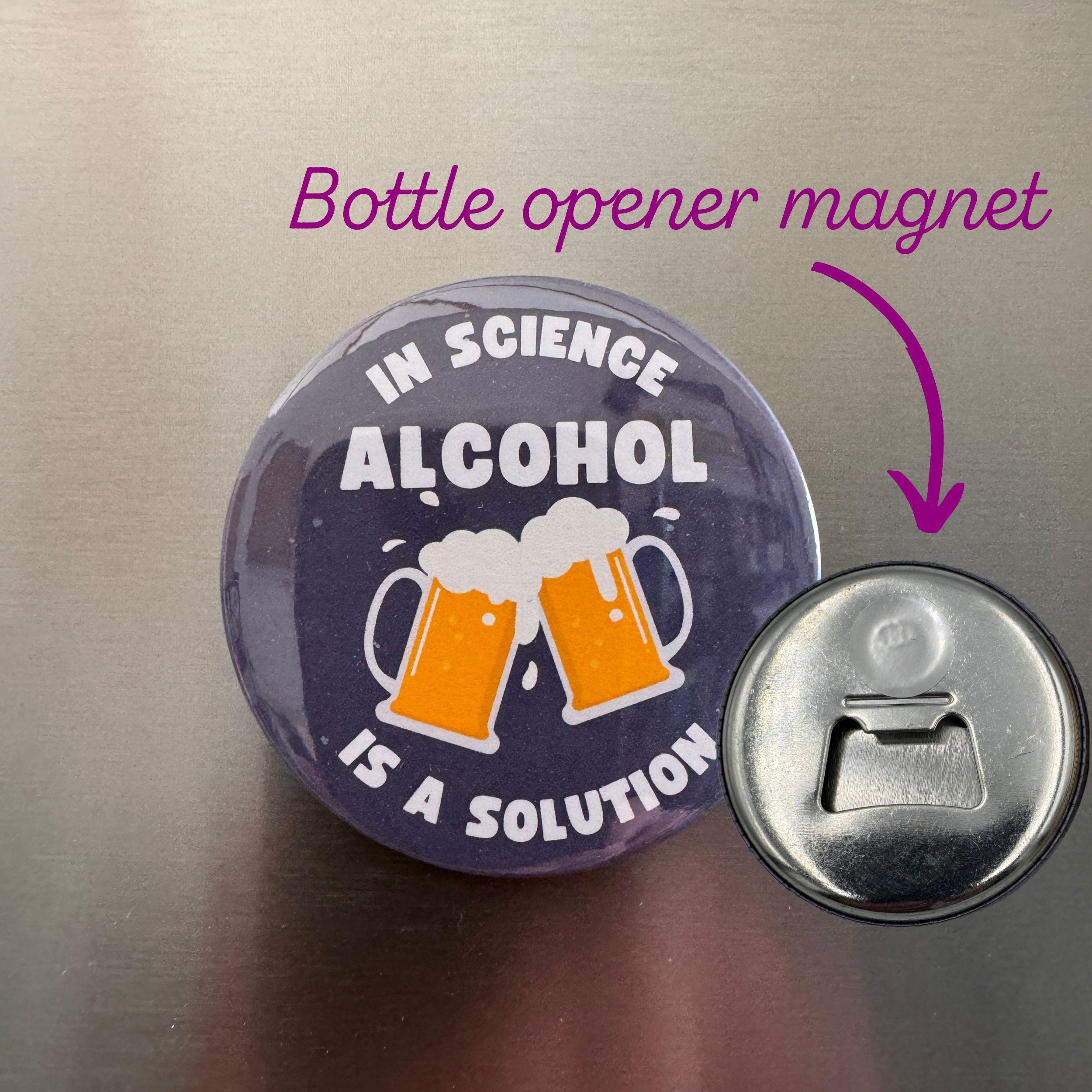 Funny Science Bottle Opener Magnet. In Science Alcohol is a Solution. Magnet Scientist Gift.