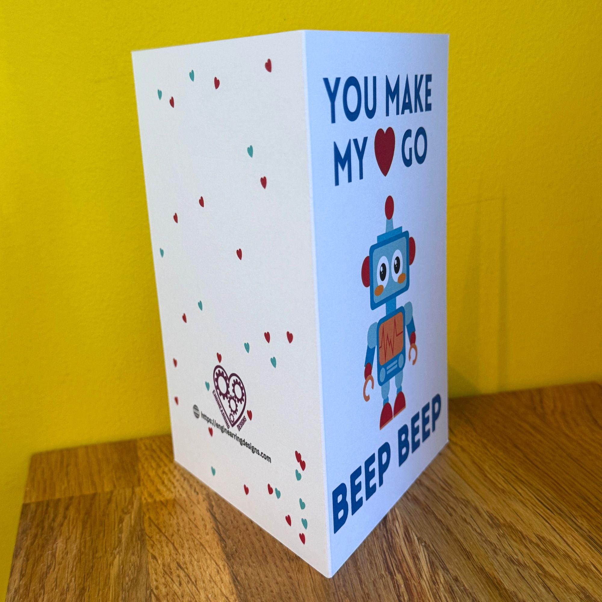 You Make My Heart Go Beep Beep Engineer Card. Funny Engineering Valentine Card for Robot Lovers.
